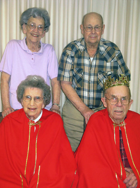 Queen Geraldine Boddicker and King Erwin Bohnstengel (seated) were attended by Frances and Berdell Aldrich (standing).