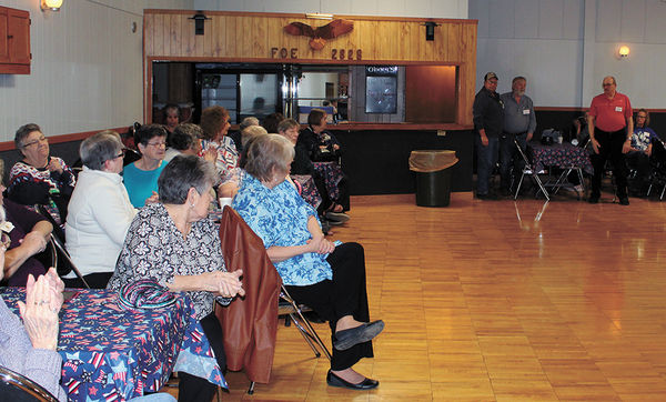 Eagles Auxiliary members and Tama FOE?leaders at the welcoming of Eagles Grand Madam President Gloria Williams.