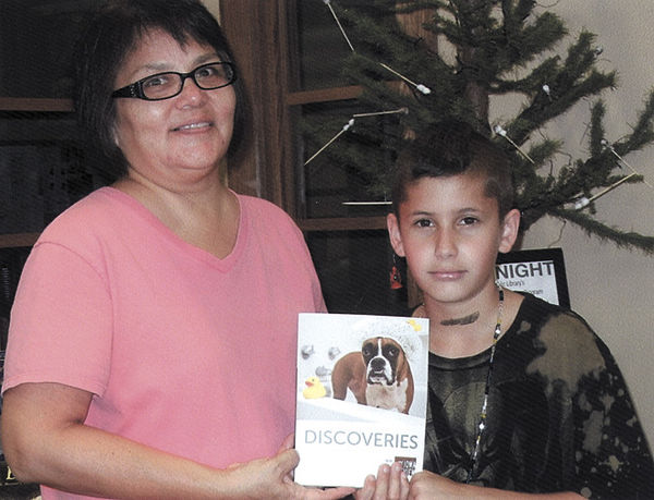 Meskwaki Settlement- Micah Young Bear, 9, of the Meskwaki Settlement, recently donated a copy of his book "Discoveries: New Writing from The Iowa Review" to the Toledo Public Library. Brenda Wanatee accepted the book on the library's behalf.Micah,, who's the son of Stella and Ray Young Bear, ...