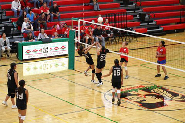 Danica Morgan (N0. 3) and Shyannon wolf (No. 23) tip the ball over the net in the Meskwaki Junior High girls match played Tuesday, Oct. 5. The Lady Warriorsended their season with a 32-13 record. JH Rooster with grades: 18 - Tylene Bear (7), Cayenne Whitefish (8), 22 - Myra Martinez ( 7), 3 - ...