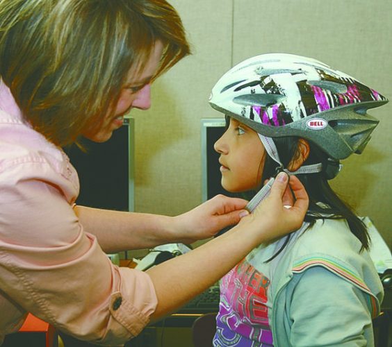 A new bicycle helmet is fitted for Mercedez Navarro by Michelle Werner of The State Bank of Toledo. She was one of all Meskwaki Settlement School 3rd grade students who received new helmets on Tuesday, May 6, courtesy of area institutions and businesses including Grinnell Regional Medical ...