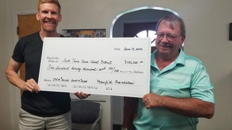 The South Tama County Schools received a donation of $120,000 from the Mansfield Foundation. $100,000 will go toward STEM Projects and $20,000 will go toward COVID-19 related costs. The Mansfield Charitable foundation is named after Wesley and Irene Mansfield. Pictured is STC Superintendent Dr. ...