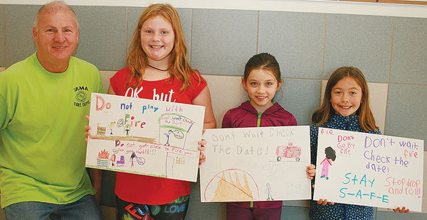Tama Fire Department Fire Prevention Poster winners- South Tama Elementary School 3rd Grade- (L-r) Tama firefighter Kenny McAdoo who made the presentations to Jamy Dolash, Lily Wacha and Addison Klenk. Each winner received a monetary award and their posters will all be entered in the Tama ...
