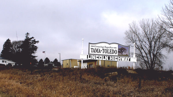 - view of the new Tama-Toledo Area Chamber of Commerce sign located east of Tama along U.S. Highway 30.