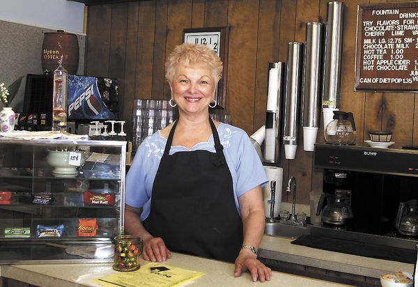 Mary Ann Gardner is shown at the counter of her Trojan Inn in downtown Toledo which has been in business on East High Street for the past 50 years. The case at her right is part of the original equipment used when the cafe opened in 1962. Chronicle/John Speer