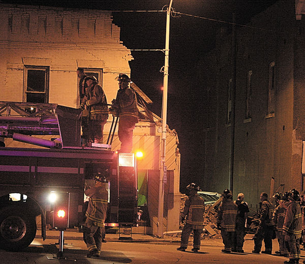 oledo firefighters are shown on the scene after the collapse of the west front portion of a building at 119 West High St. shortly after 11 p.m. on Monday Sept. 1. No injuries were reported after the west portion of the second story of the building fell into the adjacent alley. News-Herald photos/John Speer