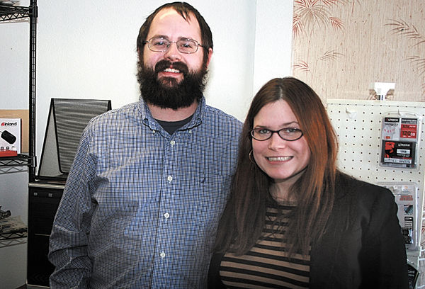 Ryan and Maggie Hansen in their computer business, RMH?Technology, in Toledo on Friday, Jan. 30. They offer full service for home and business. Chronicle/John Speer