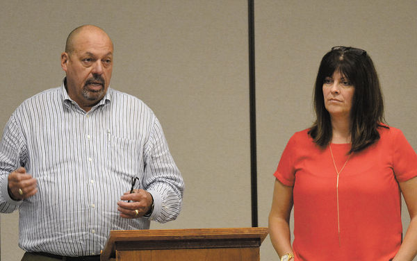 Hobart Historic Restoration owners Jim and BJ Hobart explain their plans to convert the former Otterbein United Methodist Church in Toledo into 16 apartment units during their presentation at the Pitch and Build competition on Sept. 15. They said their company has been involved in about a dozen building renovations in different Iowa cities. Chronicle/John Speer