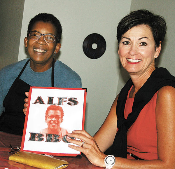 Iowa Lt. Governor Kim Reynolds dined at ALFS BBQ owned and operated by Audrey Smith while visiting Tama businesses on Wednesday, July 27. ALFS is located in downtown Tama and specializes in southern style barbecue all prepared in-house by Smith. Lt. Gov. Reynolds continued on to Cedar Rapids to speak at the announcement of the $1 billion Alliant Energy wind turbine project.