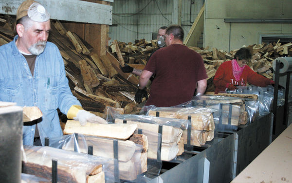Now there are six employees who place firewood into retail packaging on a conveyor system and three more logging timber. They process 1,105 bundles daily.