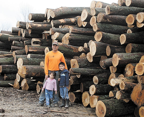 - Luke, Audra and Malachi Squiers with some of the logs awaiting processing into firewood at the Central Iowa Firewood location Tama’s east side.