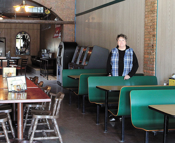 Karen Musgrave with the new look for Bumblebee’s in downtown Toledo where the old “pool hall” atmosphere has been transformed into a family setting for meals, parties and gatherings. Noon lunches and food service in the evenings have been added to the long-time pizza offerings in the former bar area. Chronicle/John Speer