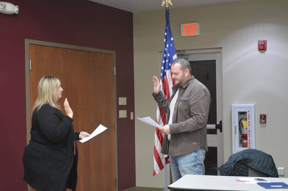 Mayor Brian Sokol was sworn in again, before turning around and swearing in returning council members Cathy Cook and Duane Pansegrau. Former Tama Mayor Doug Ray was also sworn in as a Toledo Council member. As the three council members were sworn in at the same time, the small group said their oath in mumbled unison that was described as a “word salad.”