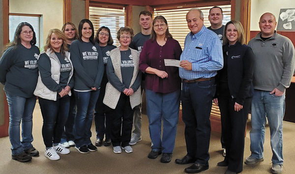 State Bank of Toledo presented Tama Public Library Director Julie Shook with a check for $915. Employees on hand to present her check were left to right: Marlene Packer, Chris Nelson, Amanda Clinton, Krystal Peshel, Jenni Rendell, Laurie Velky, Wes Upah, Julie Shook, John Kavalier, Brian ...