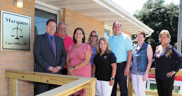 Tama-Toledo Area Chamber of Commerce members greeted attorney Mike Marquess and legal assistant Teresa Vodochodsky during the open house at the law firm's new office at 205 West High in downtown Toledo. From left are Mike Marquess, Roger Gilbreaith, Pinnacle Bank, Vodochodsky, Chris Nelson, The ...