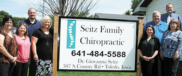 Tama-Toledo Area Chamber of?Commerce members welcomed Giovanna Seitz D.C. on Thursday, July 7 at her new offices in Toledo. On hand were (l-r) Barb Jordan, Moore, McKibben, Goodman and Lorenz LLP, Lesley Youngbear, Lincoln Savings Bank, Matt Zmolek, Independent insurance and Chamber president, ...