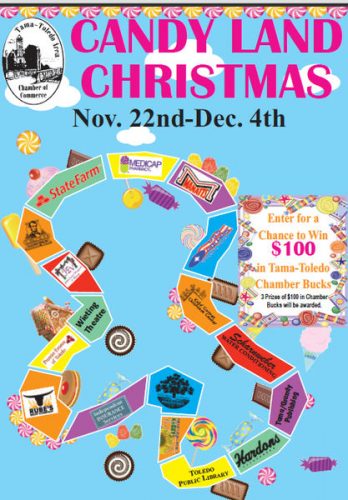 The game boards for the Tama-Toledo Area Chamber of Commerce holiday game Candyland Christmas are now available at participating businesses.Deadline to complete your entry is Dec. 4 with a big array of events set for Dec. 5.