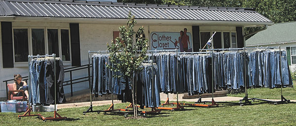 When the South Tama Clothes closet in Tama advertised they were having a big Back to School Jenas Sale, they weren't kidding with this huge assortment on display on the front yard last week.