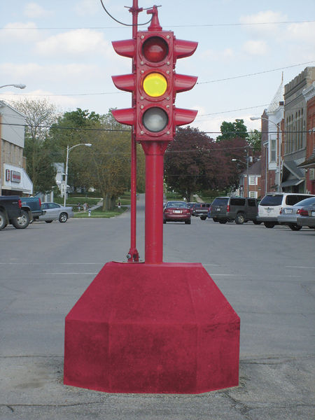 Toledo Council memberTravis Mullen presented some computer generated photos(including one above) of the stoplight in various colors. The council voted 5-0 to paint both the light and base red.