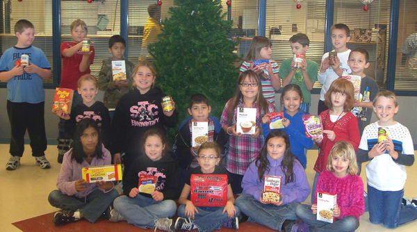 - STC Elementary students display some of the 698 food items they collected for the South Tama Food Pantry. Photo by Anita Townsley