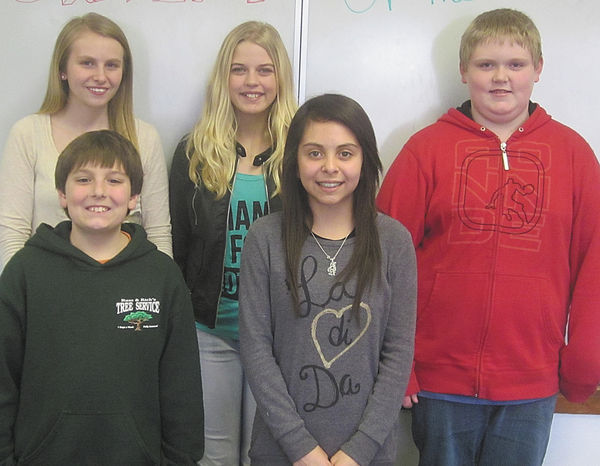 Back, Left to Right: Cora Van De Walle (8th), Mackenzie Beyer (8th), Andrew Sebesta (6th) Front, Left to Right: Mitchell Klostermann (5th), Perla Nunez (7th) Not Pictured: Jaden St. John (7th), Aubrey Roberts (6th), Ryan Hamlin (5th) -Photo provided