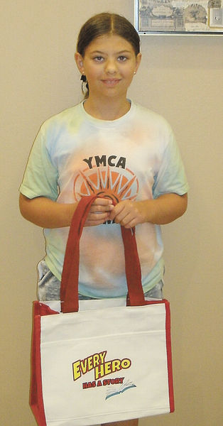 Tons of fun was had and lots of books were read. Shayla Behounek was our big reader that turned in the most minutes with 2,276 minutes read for the duration of the program. Shayla won this very awesome canvas bag to remember her great reading efforts.