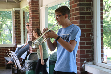 - Jonathan Meyer leads the Tama Toledo Trumpets in practice on Friday, June 7.