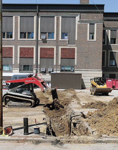 Work by Scharnwebers Inc. to install a new 4-inch water supply line at the South Tama Middle School in Toledo was wrapping on Friday, July 19. It replaced an aged one at an estimated $14,000 cost according to Mary Boege, STC?business manager. Chronicle/John Speer