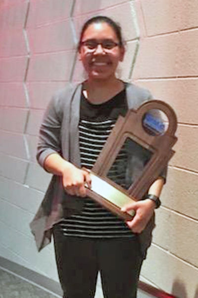 - Sophomore Luis Avalos proudly presents one of his two I ratings for the day