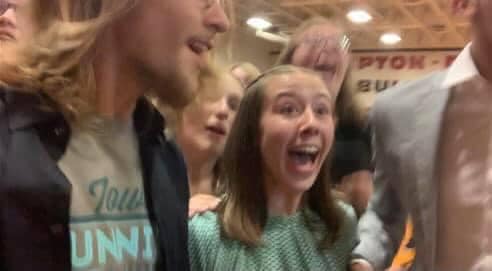 South Tama's Katie Husak the moment she sees she has made it through to the All-State Festival for a third year in a row. -- Contributed photo