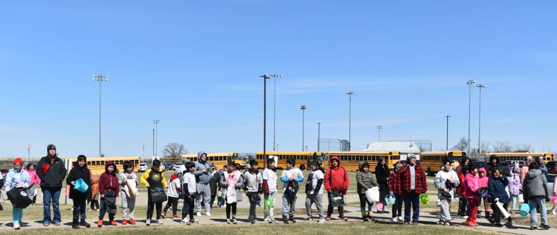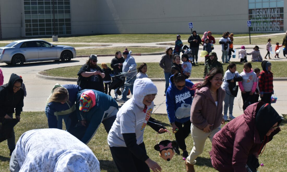 The lawns of Meskwaki schools dazzled and sparkled last Saturday as people of all ages flocked towards the more than 6,000 eggs laying in the grass. Four divisions spread from the northern tip of the high school to the baseball diamond, equally dividing the eggs between the fast-paced kids and their leisurely lumbering counterparts.
