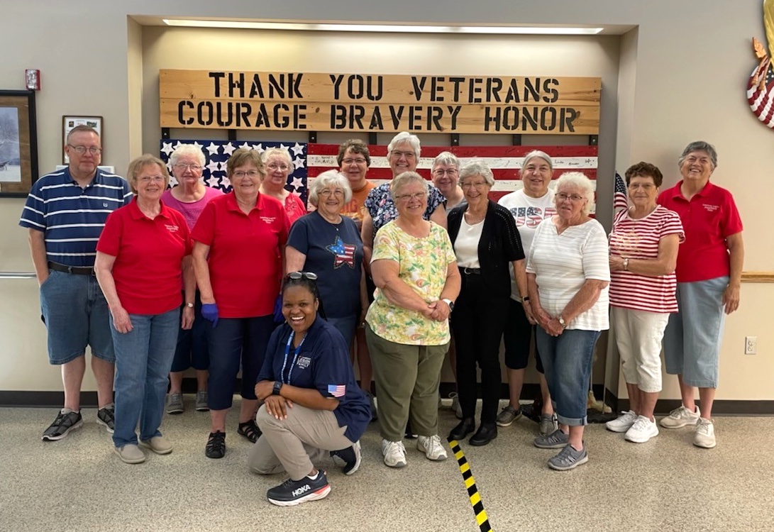 MARSHALLTOWN – Tama County American Legion and Auxiliary hosted the Tama County Iowa Veterans’ Home Picnic on Aug. 3. The Auxiliary provided meatballs, cheesy potatoes, baked beans, homegrown sweet corn, potato salad, tomatoes, coleslaw and various assortment of pies. We served 110 residents. Pictured are those who were there that day to help serve the food and also helping the residents through the line. The picnic is held every first Saturday of August.