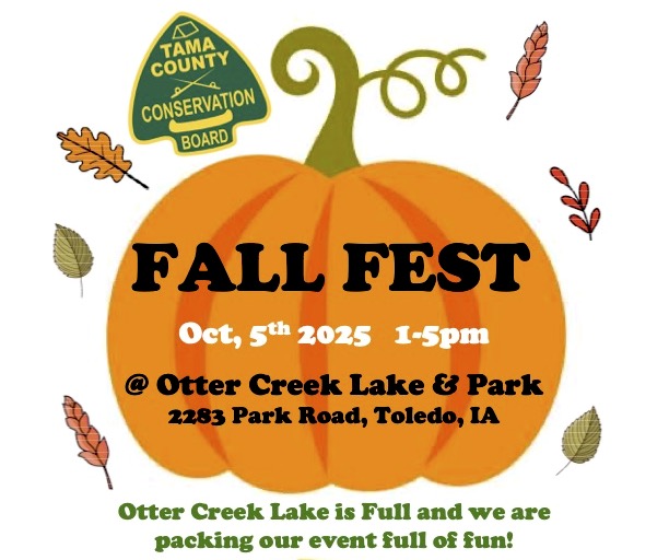 OTTER CREEK LAKE & PARK – With Otter Creek Lake at last full following the restoration project that completed in 2023, Tama County Conservation is more than ready to welcome the public to its family-oriented Fall Fest on Sunday, Oct. 5, from 1-5 p.m.