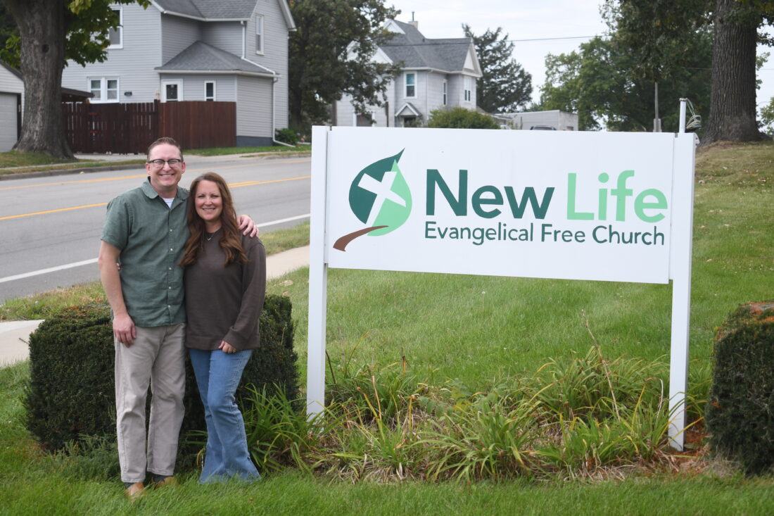- PHOTO BY JONATHAN MEYER – New Life Evangelical Free Church Pastor Steve Brant and his wife Amy pose for a photo during the church’s 10th anniversary celebration last Saturday. New Life is located at 211 W. 13th St. in Tama.