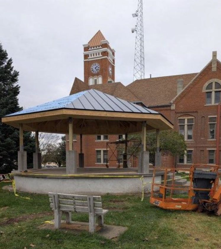 TOLEDO — “Completion is moving along,” Jim Roan, project manager for the renovation of Toledo’s downtown Bandstand reported on Oct. 13. As is evident to passersby. The bandstand, on the Tama County Courthouse lawn, now has a roof with Todd Long’s crew wrapping their portion of the work last Friday.