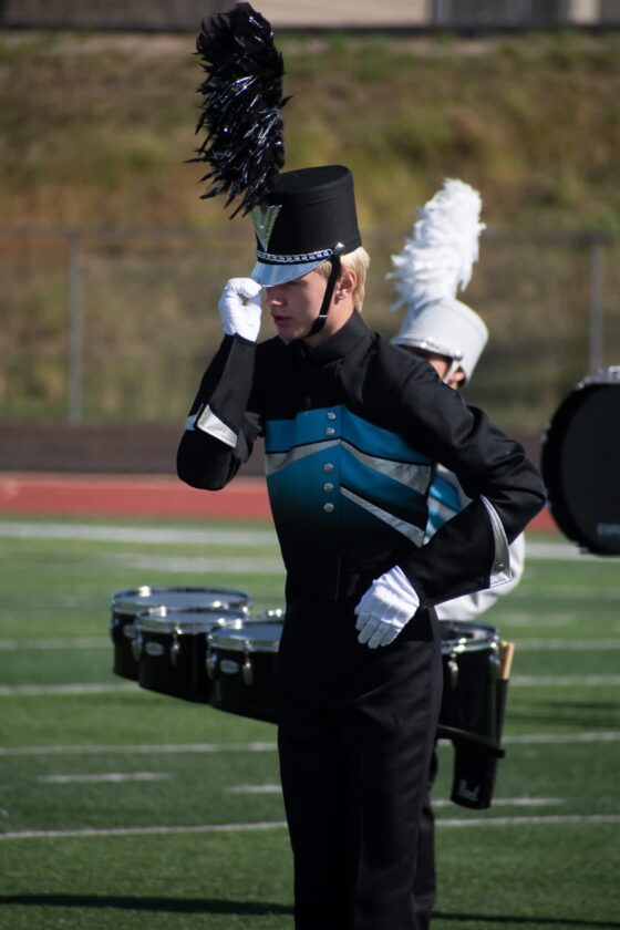 Every marching band has its leaders, and at STC this year that role was shared by two drum majors, juniors Jordan DeFoe and Josiah Houghton. Carnahan noted the inherent challenge: “Starting two new Drum Majors is always a challenge. … They have to lead the band … but also in rehearsals by example or even outside of rehearsals in the way they represent themselves, our band and our school. It’s a fine line to toe when the people they are directing and leading are also their peers.”