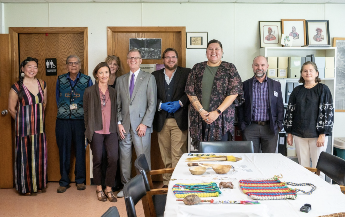 CONTRIBUTED PHOTO Pictured from left to right: Angela Waseskuk, former UNI faculty member, artist and educator; Johnathan Buffalo, historic preservation director for the Meskwaki Nation; Theresa Westbrock, dean of the Rod Library; Jennifer McNabb, department head of history; UNI President Mark Nook; Nathan Arndt, UNI Museum director; Tieranny Keahna, Meskwaki Tribal historic preservation officer; Daniel Hartwig, associate director of the Rod Library; Oksana Grybovych Hafermann, chief of staff.