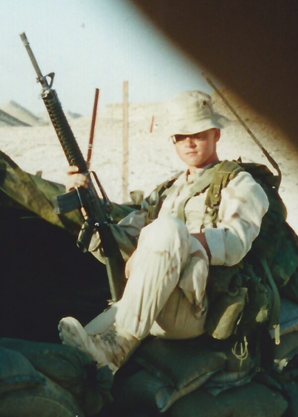 “Not even a week after graduation, I went away to the Marine Corps, where I served in an active duty helicopter-borne rifle company in Camp Pendleton, completing two WESPAC sea-service deployments with the 15th and 13th Marine Expeditionary Units. My last deployment involved the force protection and recovery operation of the USS Cole in October 2000. After completing my service in the Marines in June 2001, I enlisted for a three-year enlistment with the Iowa Army National Guard. I was promoted to sergeant and completed a 6 month Multi-National Force & Observers deployment in Sinai, Egypt. It was on this deployment that I became a Christian,” he wrote in his ILEA bio.