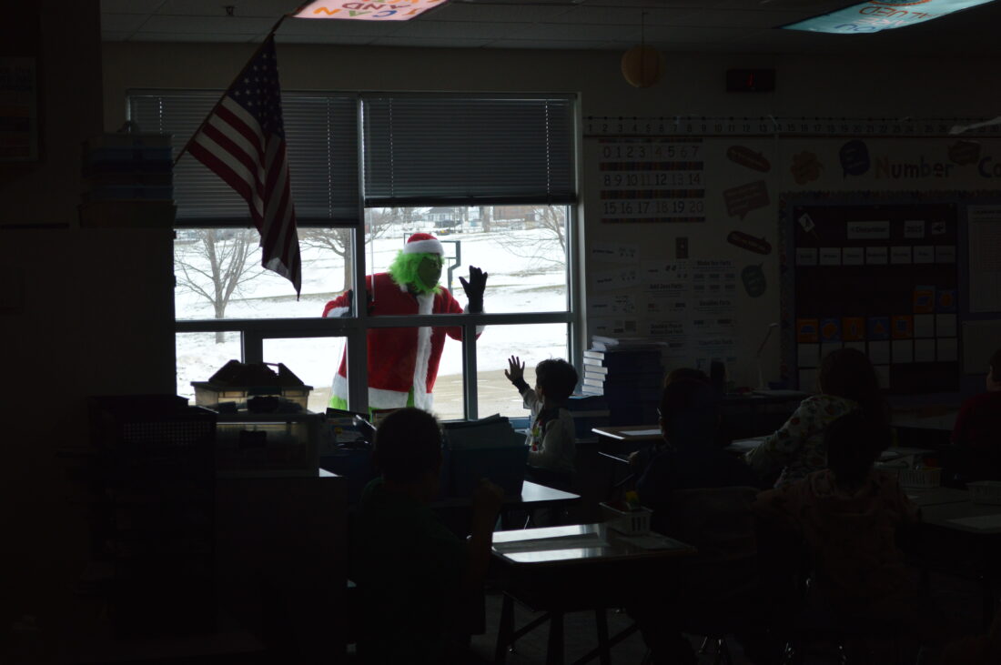 Mr. Grinch wandered from the lunchroom to the kindergarten class, slinking through the hallways with speed. Then in an instant, he was outside and peering in windows, shocking all the who’s down in the Whoville second-grade classroom. The high school was also reportedly visited by this mischievous holiday staple.