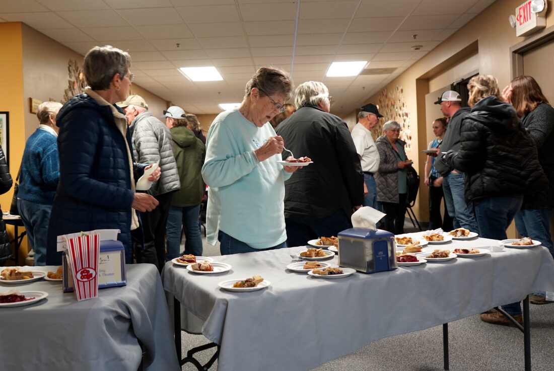 - The Pie Lady, center, chats with moviegoers following the “PIEOWA” screening as they enjoy slices of her delicious homemade pie which was featured in the documentary. PHOTO BY RUBY F. MCALLISTER