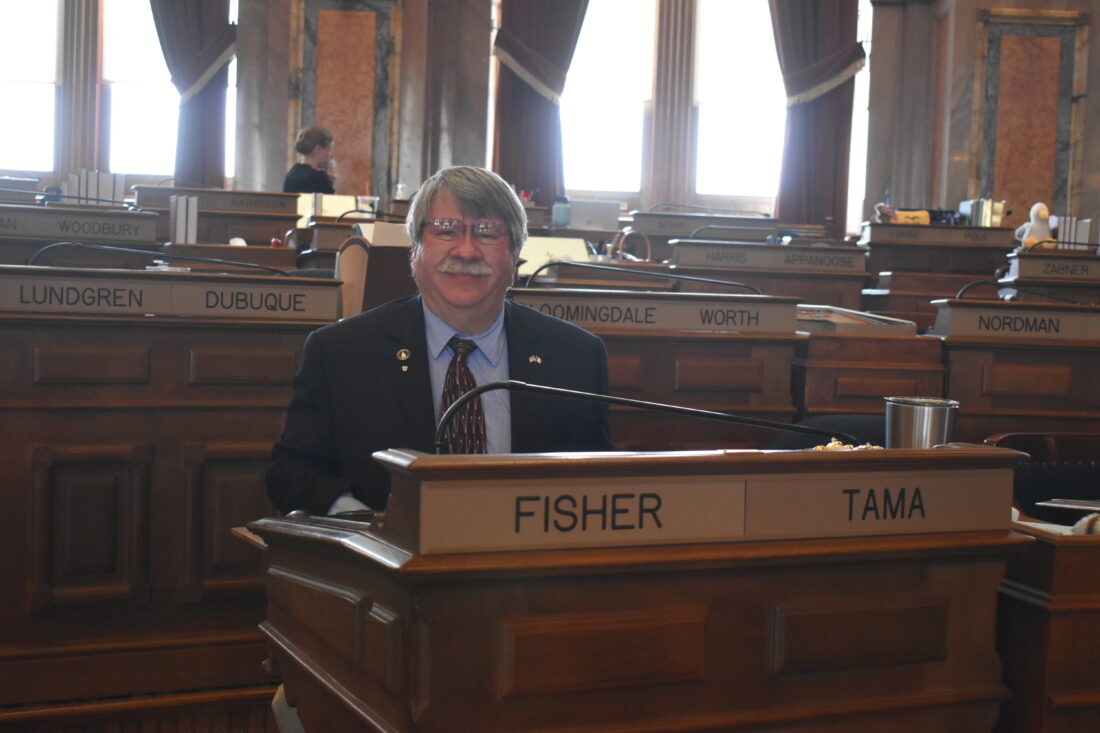PHOTO BY JONATHAN MEYER – Within the Iowa House of Representatives Chambers, you can find District 53 Representative Dean Fisher sitting at his desk. House District 53 includes all of Poweshiek County and most of Tama County excluding the northeast corner.