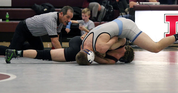 - Josh Thiessen works to turn Kaine Millard of Independence for a pin.
