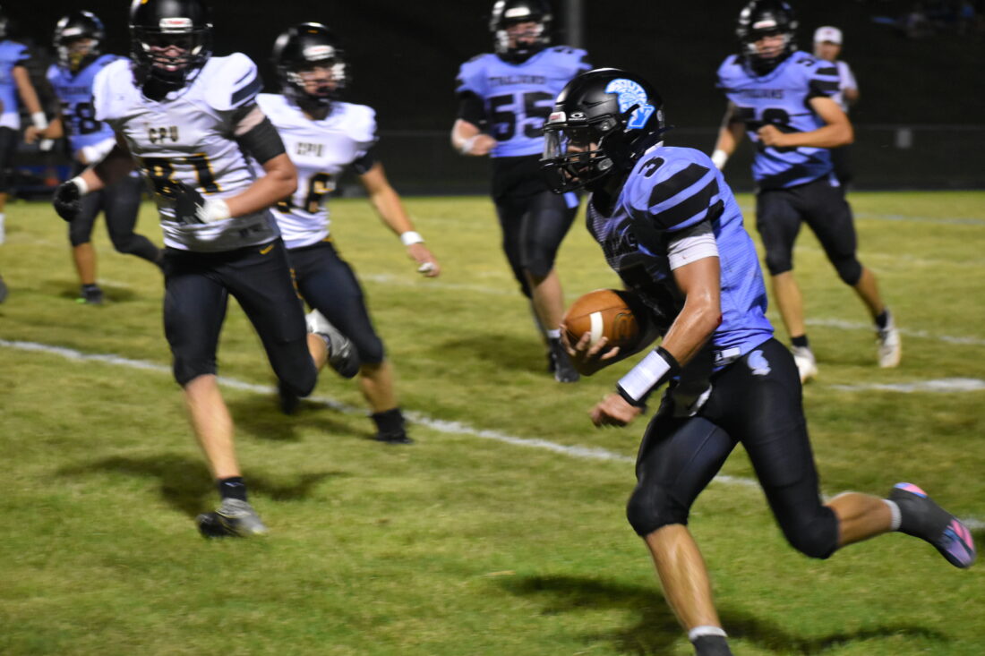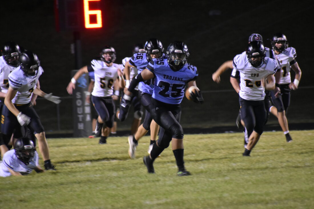 But South Tama continued to fight and an interception by junior Tanner Large gave the Trojans the ball at the CPU 35-yard line. Following the interception, the passing game once again found success, as Blocker found Medina for a 20-yard gain. Medina capped off that drive with a 27-yard field goal, and the Trojans cut the lead to 16-3.