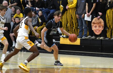- NEWS CHRONICLE PHOTO BY STEVE BRANT – STC junior Josiah Houghton looks for a driving lane against Vinton-Shellsburg.