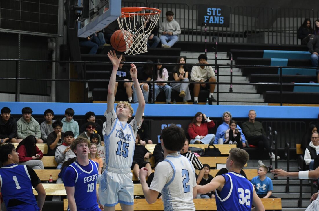 STC senior Barrett Jesina scores two of his 22 game-high 22 points against Perry.