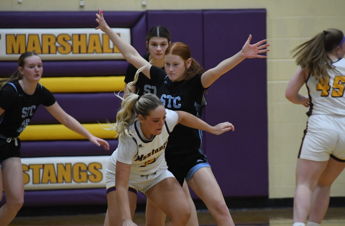 - STC junior Mady Boriskey plays tough defense against East Marshall.