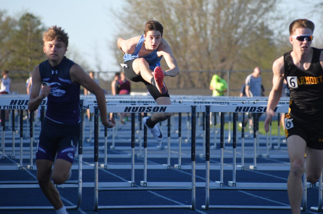 - STC freshman Mason Witt clears the final hurdle in the 110 hurdles at the Hudson Relays.
