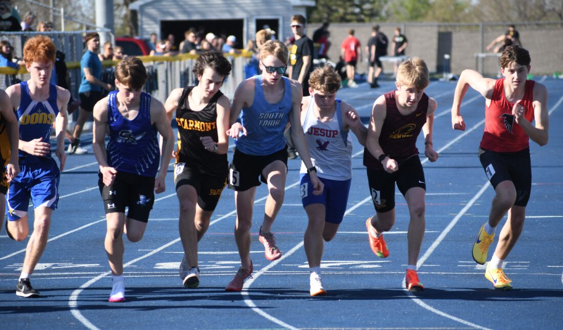 STC senior Barrett Jesina takes off in the 3200 race in Hudson.