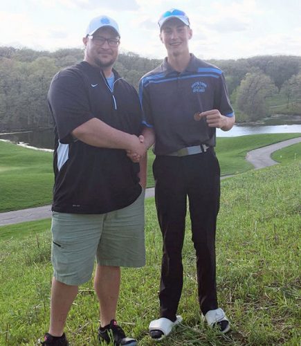 STC's Brayden Smith (right) earned Honorable Mention following the boys WaMaC Conference Meet on Monday, May 7. With him is coach Nate Doran.