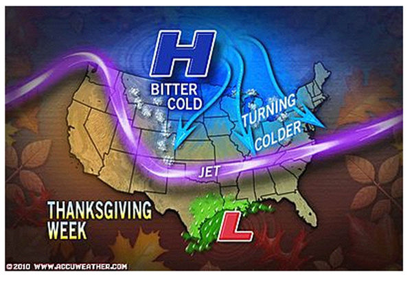 STATE COLLEGE, PA. – (SPECIAL) AccuWeather.com reports Thanksgiving week for much of the U.S. is looking ice cold as one or more blasts of air spill southward out of the Arctic.